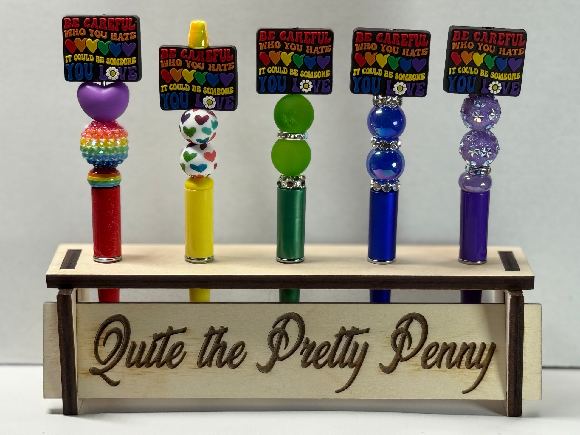 Pens featuring a topper of Be Careful Who You Hate, It Could Be Someone You Love